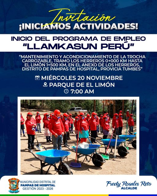 🔰 La ilustre Municipalidad Distrital de Pampas de Hospital que lidera nuestro Alcalde el Prof. Fredy...
