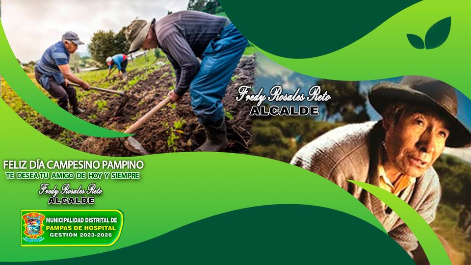 Pueblo de Pampas de Hospital, El Alcalde de la Ilustre Municipalidad Prof. Fredy Rosales Reto, el día de hoy les brinda un fraternal y caluroso saludo. y es más, un merecido reconocimiento a todos los hombres y mujeres que labran el campo, agricultores de nuestro populoso distrito. y de todo el país.